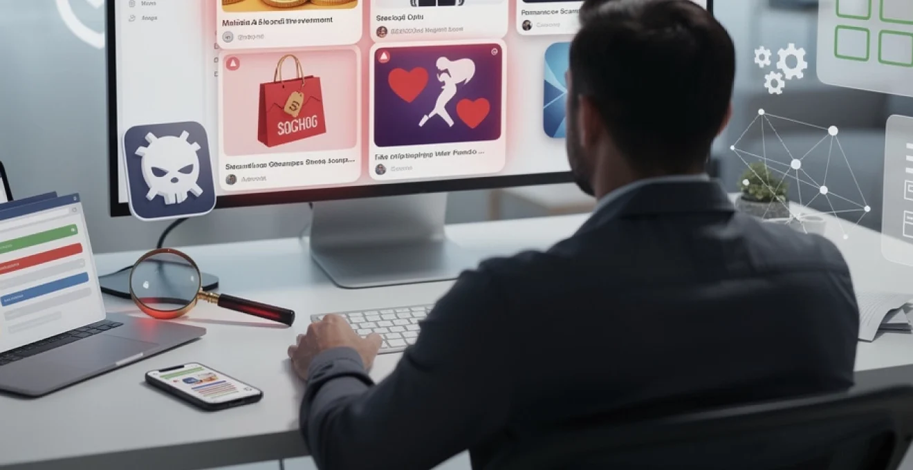 Les arnaques romantiques exploitent la solitude et la recherche de connexion humaine. Sur Facebook Dating ou via des publicités menant vers des sites de rencontre douteux, des escrocs créent de faux profils particulièrement soignés, souvent illustrés par des photos volées à de mannequins ou d’influenceurs. Ils entament ensuite une relation en ligne, gagnent progressivement la confiance de leur victime puis finissent par demander de l’argent pour une urgence médicale, un billet d’avion ou un projet commun fictif.